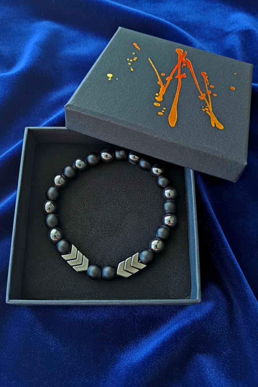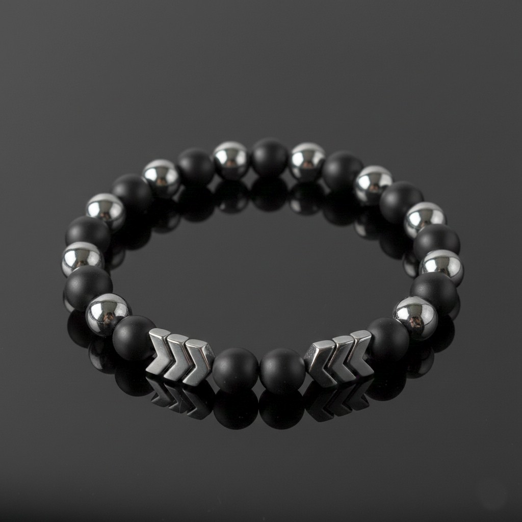 Käevõru must matt oonüks/ahhaat ja hematiit nooltega