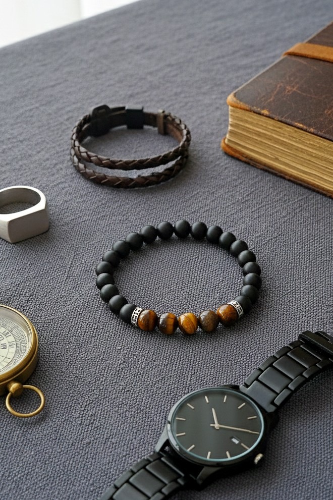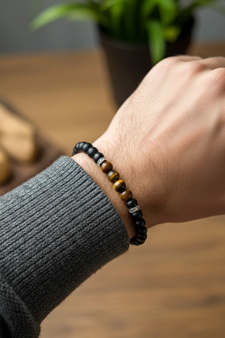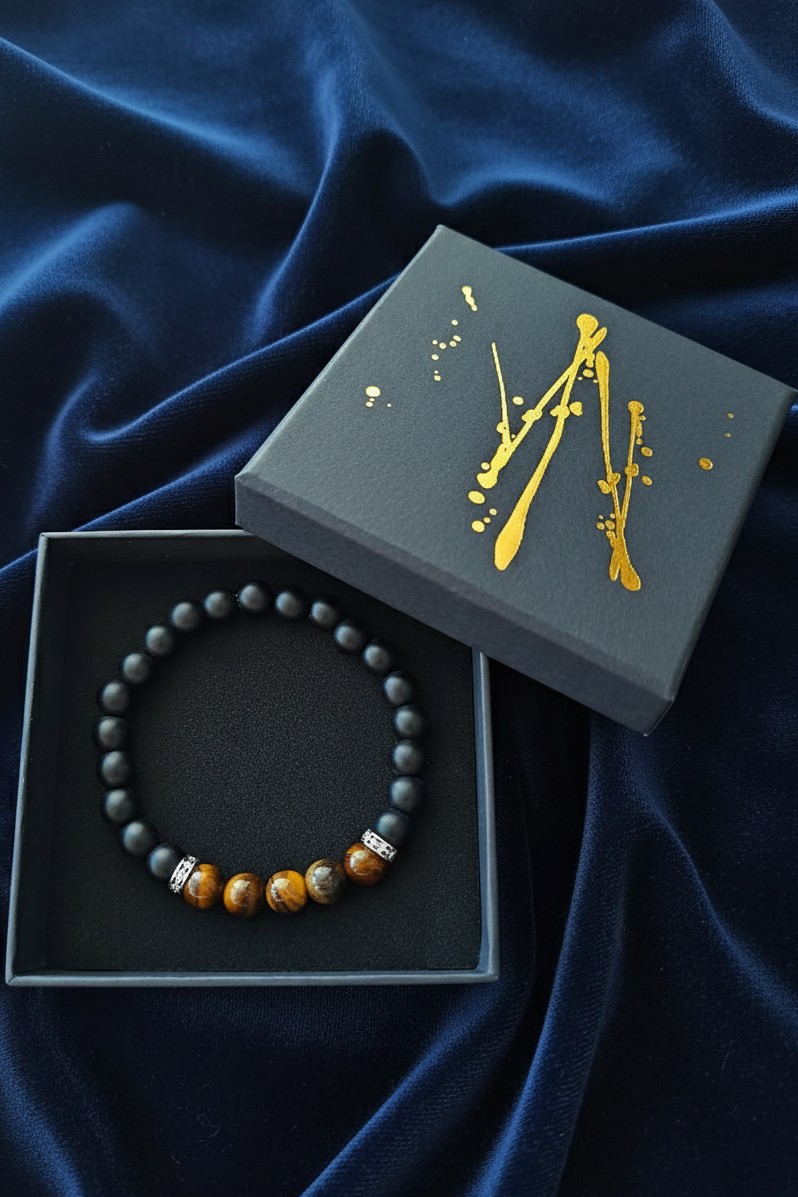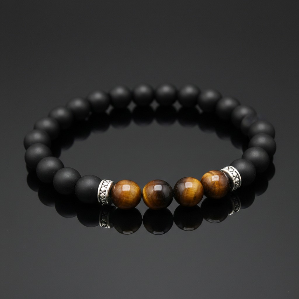 Käevõru must matt oonüks/ahhaat ja tiigrisilm