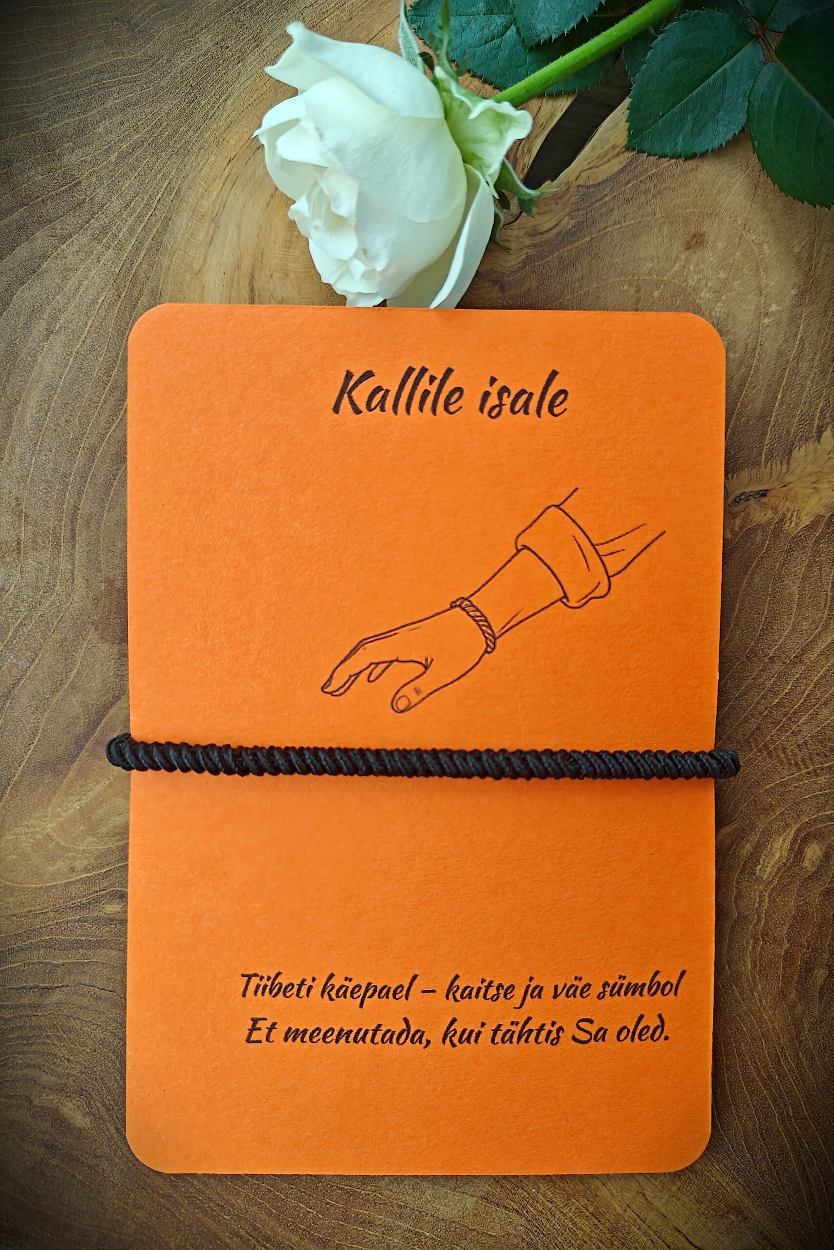 📝 P.S. Kui soovid kinkida mõne teistsuguse Tiibeti käepaela (näiteks vahelüliga variandi) spetsiaalsel kaardil, siis pane toode ostukorvi ja kirjuta märkustesse sõnum “Kallile isale” või “Erilisele mehele”. Panen sinu valitud käepaela vastavale kaardile.